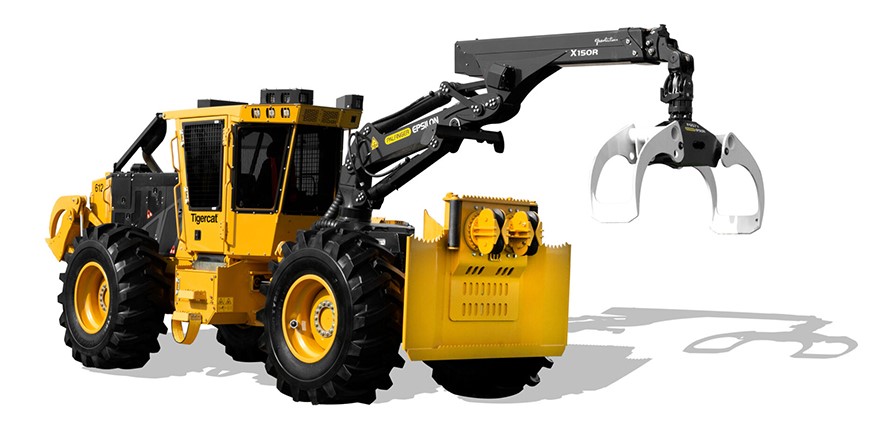 Introducing the 612 dual winch skidder. It is specially designed to operate in selective harvesting applications, extracting high value timber in steep or sensitive terrain conditions. The Tigercat 612 series skidder platform was created to manage the extraction function in challenging terrain selective felling applications, while preserving the value and quality of the residual stand. The machine can be equipped with a dual winch, a movable back shield and fairlead system, as well as a crane, and front blade tongs. The 612 is equipped with the Tigercat FPT N67 Stage V engine, delivering 155 kW (208 hp). Combined with Tigercat’s efficient drive system, the 612 impressively handles adverse terrain while minimizing wheel spin. A narrow stance allows easy navigation through tight trails and rough ground conditions. The movable shield can be used as an anchor while winching. The dual winch and moving fairlead system allow the operator independent control over two separate cables when operating in tight stand conditions. The optional heavy-duty crane and blade tongs offer even more versatility for extracting, maneuvering and sorting logs. The operator’s cab is spacious with generous sized windows providing clear sightlines. Creature comforts include a climate-controlled cup holder and dedicated storage. Key to ergonomics and operating the machine effectively is the Turnaround seat. Turnaround provides increased comfort, clear sightlines, and easy entry and exit from either side of the machine. The operator enjoys full control of all machine functions in any position within the 220° range.